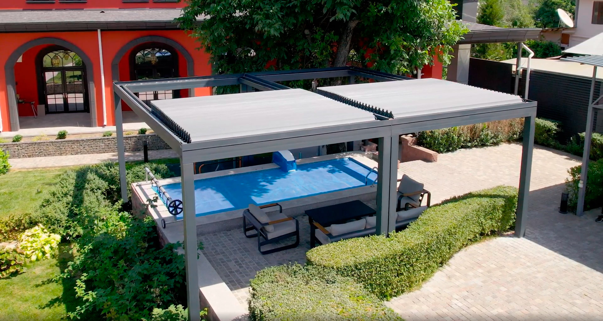 Turnkey pergolas feature modern design, durable aluminum profiles, automatic louver control, and reliable protection from sun and rain.